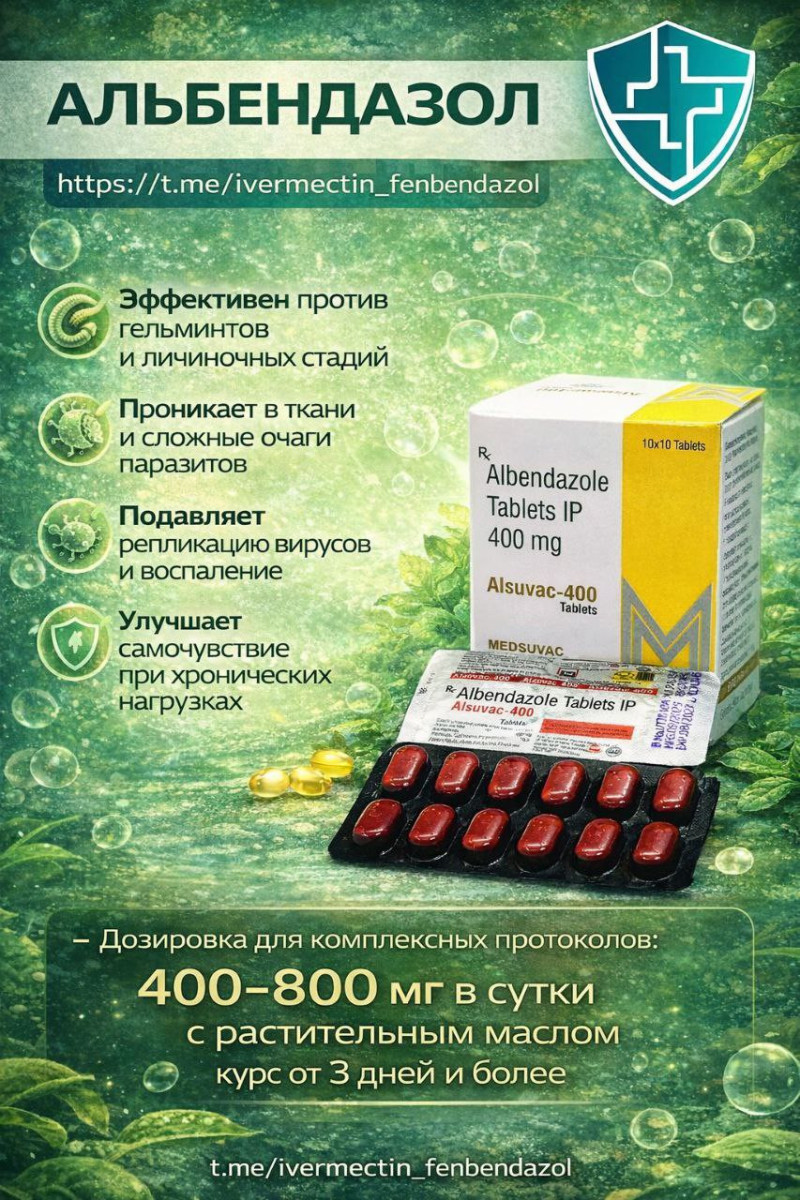 ???? Помимо противопаразитарных свойств, альбендазол активно изучается за пределы классической паразитологии за его противовирусные и противовоспалительные свойства, которые усиливают общее восстановление организма в регионах России.